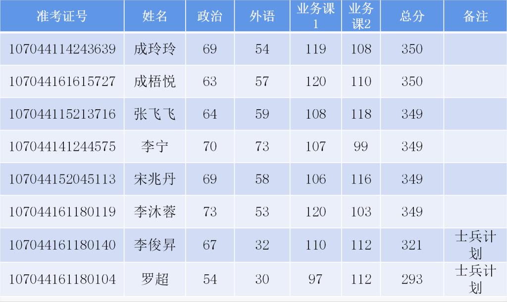 2.研究生的录取以考生总成绩为依据(总成绩计算办法为:总分=初试总成绩×0.2×70%+复试成绩×30%),严格按总成绩排序由高分至低分确定最后名单。