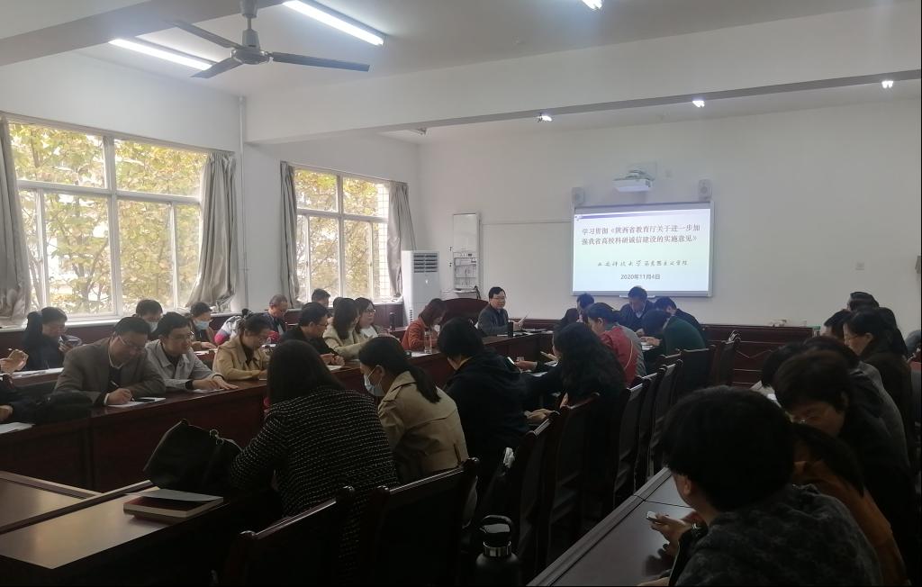 会议中,副经理张铭钟带领全体教师学习了《陕西省教育厅关于进一步加强我省高校的实施意见》(陕教〔2020〕171 号)文件精神,要求思政课教师必须筑牢思想基础,加强自身的学术道德和诚信。365英国上市集团制定了“落实《陕西省教育厅关于进一步加强我省高校的实施意见》的举措”,加强对思政课教师和研究生的科研诚信教育和管理。
