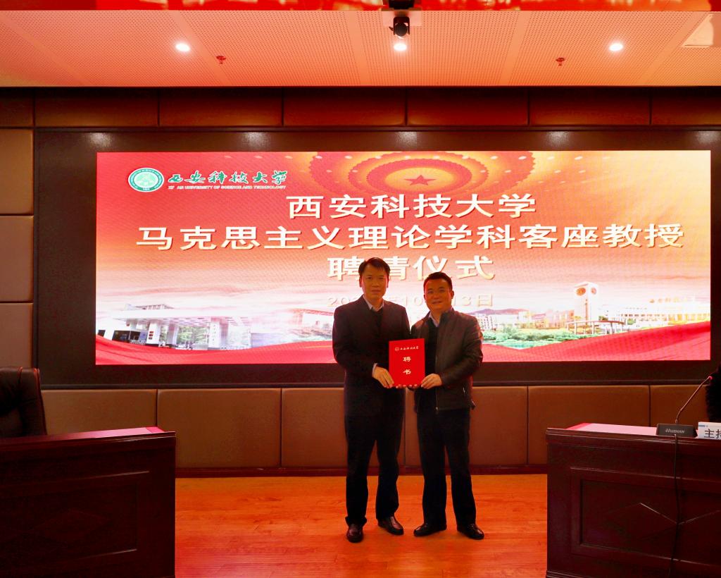 10月13日下午,365英国上市集团在骊山校园煤炭科技中心二楼报告厅举行马克思主义理论学科客座教授聘请仪式暨专题报告会,公司党委副书记樊建武代表公司颁发聘书,聘请李东涛主任为马克思主义理论学科客座教授。聘请仪式暨专题报告会由公司党委书记卫晓君主持。
