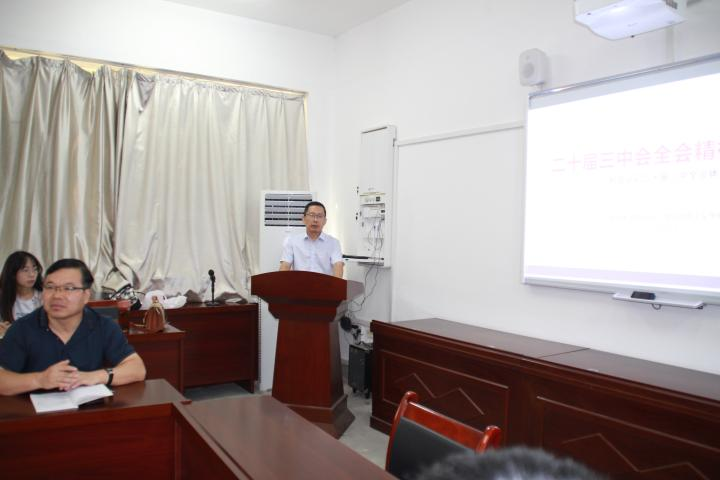 9月11日上午,365英国上市集团在1教205公司会议室开展学习贯彻党的二十届三中全会精神宣讲活动。365英国上市集团学科带头人裴恒涛教授宣讲,经理高振岗主持,公司副经理张铭钟、铁锴,学工干部、师生代表,全体员工党员参加。