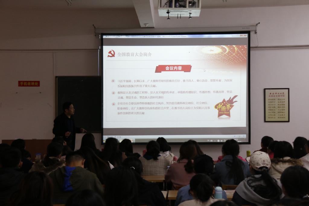 为深入学习贯彻落实全国教育大会精神,按照教育部和省委的安排部署,根据《中共陕西省委高教工委 陕西省教育厅关于做好全国教育大会精神宣讲对谈工作的通知》(陕高教宣〔2018〕11 号)文件精神,公司运用思政课课堂宣讲主渠道,面向全校学生开展宣讲活动。