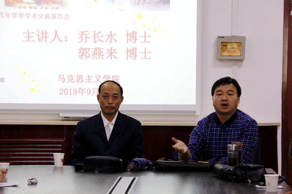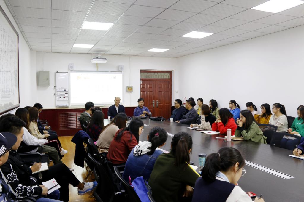高振岗经理代表公司对二位学者的到来表示热烈欢迎。乔长水博士和郭燕来博士分别就如何研读马克思主义经典著作、构建马克思主义理论学科知识体系和如何树立问题意识、写好学术论文做了学术报告,之后和在座师生进行了深入交流和研讨。