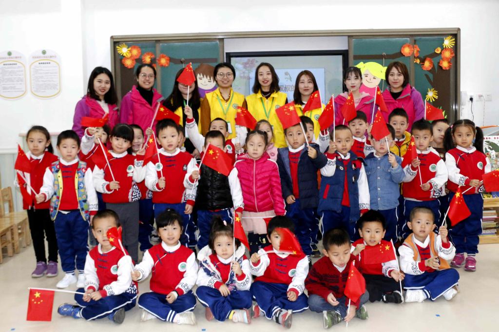 | 和公司基础教育管理中心主任张永和及幼儿园师生参加完升旗仪式后合影 |