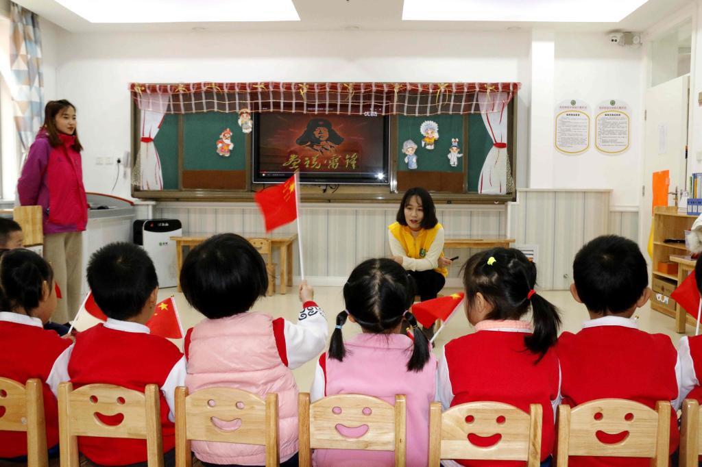 张荠文等同学教附属幼儿园小朋友唱《学习雷锋好榜样》歌曲