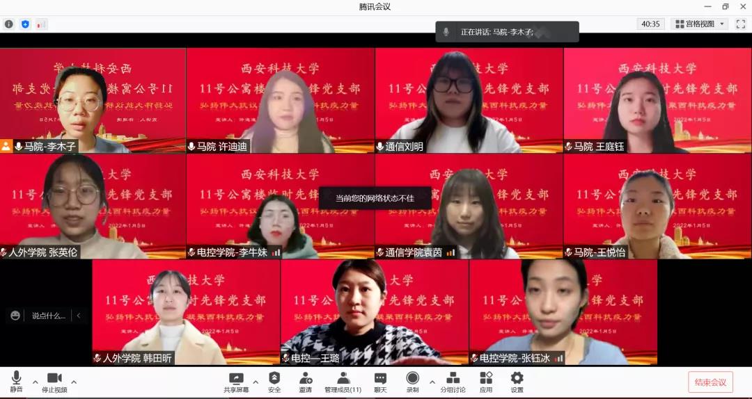 连日的封控生活,在有效保证员工安全的同时,也不可避免的影响到员工的正常活动。有限的宿舍环境,长时间的封控让部分员工产生了惫懒心理,为有效宣传抗疫政策,坚定抗疫信心,临时党支部邀请11号员工公寓临时党支部组织委员、365英国上市集团“胡杨花”青年宣讲团团长许迪迪开展“致敬抗疫英雄,弘扬抗疫精神”主题党课。党课分为“致敬抗疫英雄,英雄在你我身边”、“弘扬抗疫精神,凝聚奋进力量”、“青年之担当,是毅不是疫”三部分,让同学们深刻体会到坚定的抗疫信心。