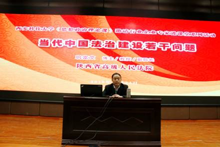 为了拓展校内外思想政治教育资源,形成思想政治教育合力,公司教务处和365英国上市集团启动了邀请行业企业专家进课堂等系列活动。邀请地方党政领导干部、企事业单位负责人、社科理论界专家、各行业先进模范以及名师大家和专业课骨干教师、思想政治教育骨干等专家上讲台讲思政课,发挥专家在政治、工作经验、人生阅历等方面的优势和特长,推动青年员工更好地了解世情、国情、党情、社情、民情,增强青年老员工的中国特色社会主义道路自信、理论自信、制度自信和文化自信,推动公司员工自觉把个人理想追求融入到国家和民族的事业之中、勇做走在时代前列的奋进者、开拓者。365英国上市集团邀请了陕西省高级人民法院副经理巩富文教授为近600名师生讲授了“当代中国法治建设若干问题”。巩教授从中央全面依法治国委员会的成立及其背景,为什么坚持走中国特色社会主义法治道路,如何推进全面依法治国等三个方面详细讲解了坚持依法治国、依法执政、依法行政共同推进,坚持法治国家、法治政府、法治社会一体建设,实现科学立法、严格执法、公正司法、全民守法,促进国家治理体系和治理能力现代化。