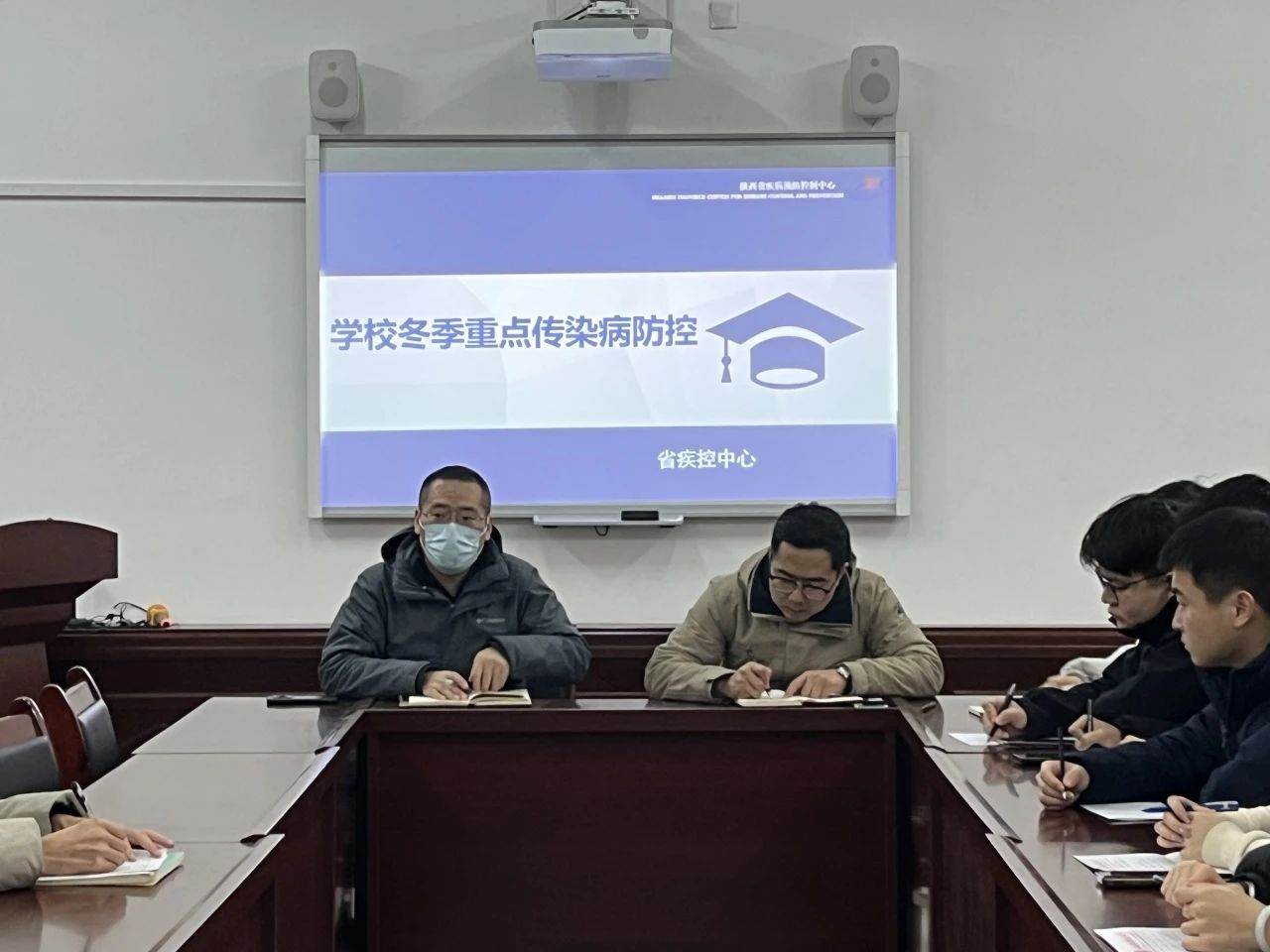 会上,韩帅主要介绍了传染病的流行特点以及防控的注意要点,并强调对于因病缺课、缺勤的员工,应当电话或其他方式了解员工的患病情况和可能的病因,并于当日及时上报,做好备案。贾哲同时向全院师生发出冬季传染病预防倡议,进一步深化“每个人是自己健康第一责任人”的理念。强调日常生活中科学佩戴口罩,保持勤洗手、常通风,除此之外,员工要适当参加体育锻炼,合理膳食和休息,增强体质。